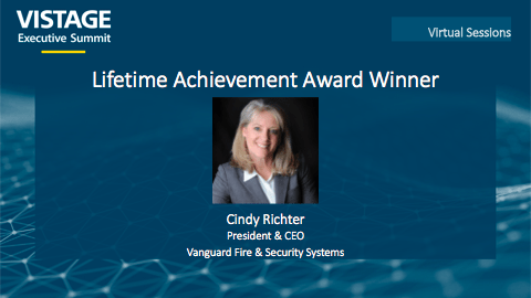 Austin, Texas 2020– Vistage, the world’s largest CEO coaching and peer advisory organization for small and midsize businesses, on April 6th announced that Cindy Richter is the recipient of the 2019 Lifetime Achievement Award. The Vistage Lifetime Achievement Award honors the achievements and ongoing commitment to learning and development of a longstanding Vistage member. These members draw from a deep well of experience and are generous in their support of fellow members. Their business achievements are inspirational and they have a track record of great decisions that benefit their companies, families and communities.