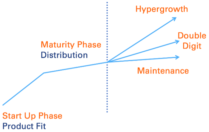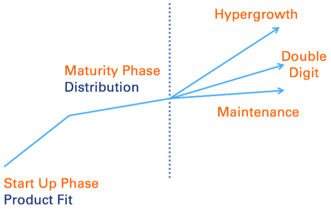 The pace of growth will dictate how you scale. In a business’s startup phase, the focal point is product.i After the product is adopted, focus shifts to gaining distribution. As an organization matures, it must create systems to sustain its growth. But a company growing at 30% has to make very different decisions than one growing at 7%. For example, it may hire people who are “good enough,” whereas a company growing moderately will leverage personal networks and be selective of every hire.