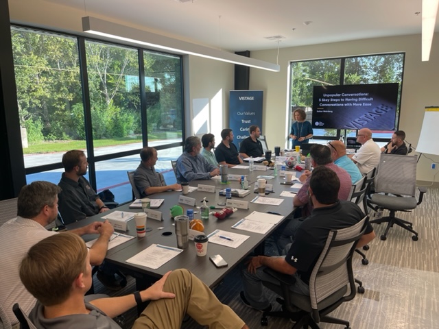 We were very fortunate in having Esther Weinberg, new Vistage Speaker conduct her workshop “Unpopular Conversations” to my Vistage Inside Branch Manager Group in September. Members and their leadership team were fully engaged and the timing was perfect with upcoming employee performance reviews and customer contracts being renewed. Esther’s intent was assisting attendees in becoming better prepared in handling low performing employees and dissatisfied customers.